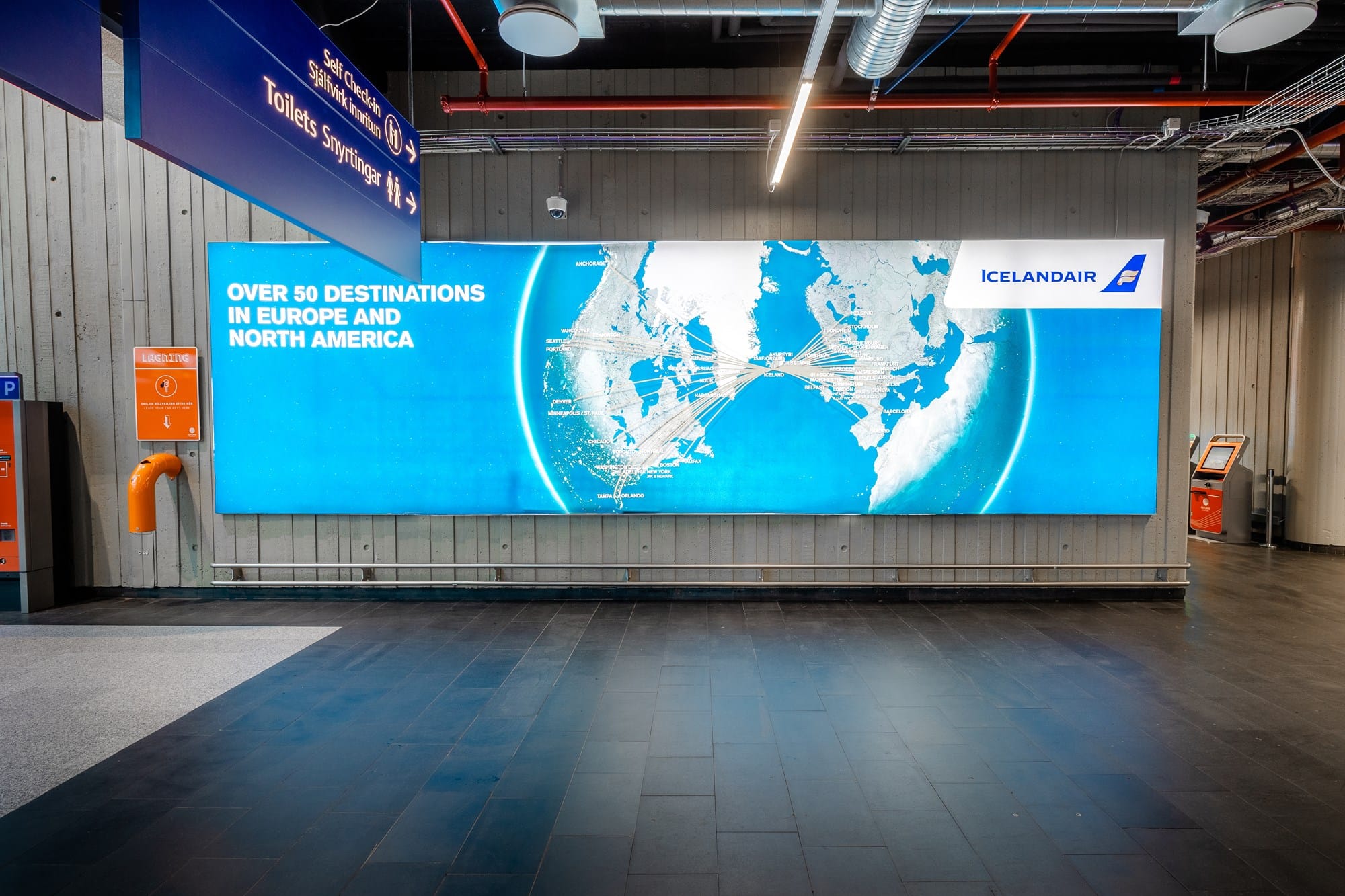 Ljósaskilti í innritunarsal