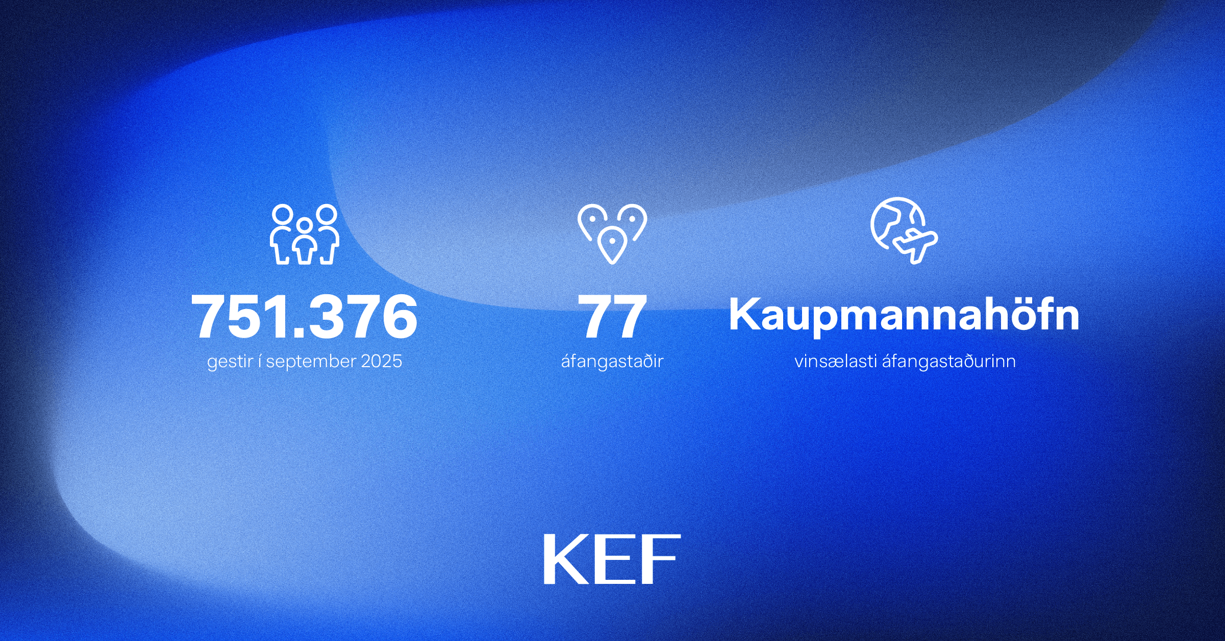 Í nýliðnum septembermánuði fóru 751.376 gestir um Keflavíkurflugvöll (KEF). Það gerir -5% færri en í september árið á undan.
