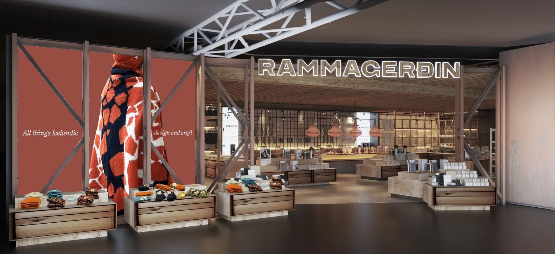 Ný verslun 66°Norður opnar á næstu vikum þar sem áfram verður í boði frábært úrval útivistarfatnaðar. Rammagerðin mun sömuleiðis opna nýja og endurbætta verslun, þar sem vandaðar íslenskar hönnunar- og gjafavörur verða í boði.