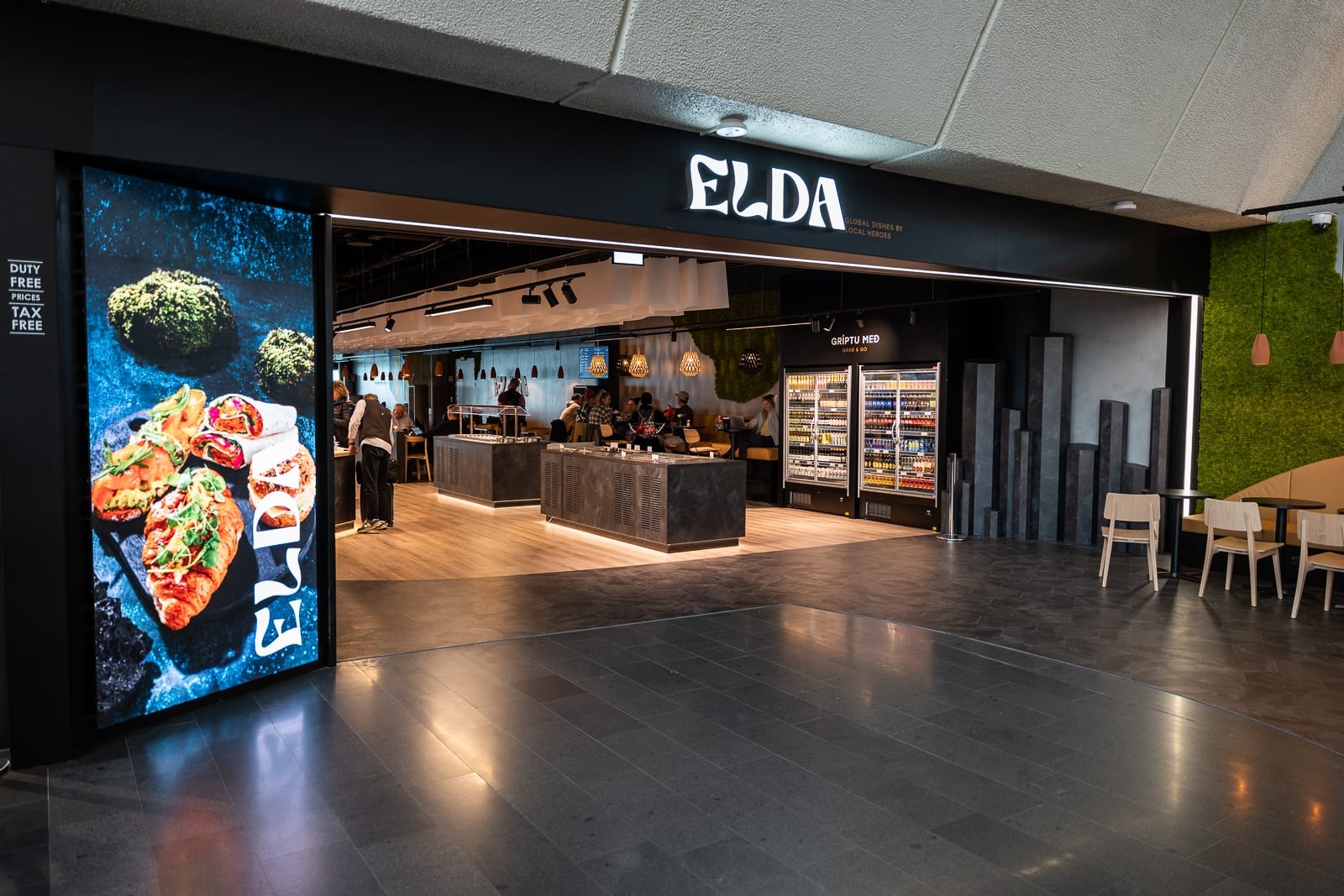 Veitingastaðurinn Elda opnaði í KEF í fyrra og þar er boðið upp á fjölbreytta kosti eins og klassíska rétti með íslensku hráefni, góða grænmetis- og veganrétti og metnaðarfullan barnamatseðil. Ísey skyrbar er inni á staðnum með ferskar skálar í boði.