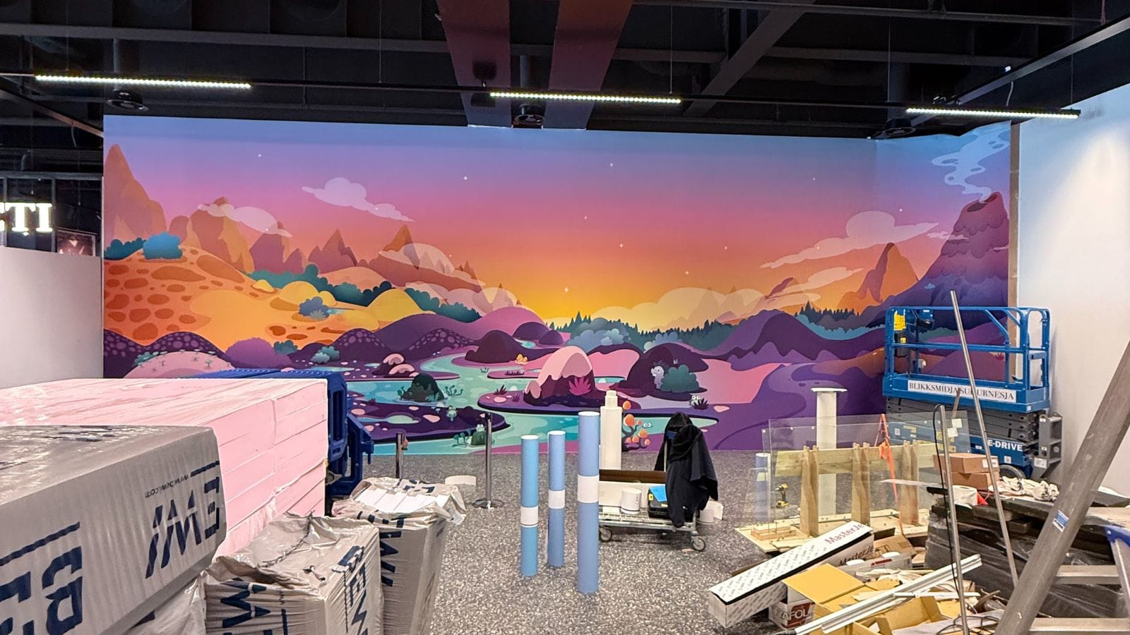 Uppsetning leiksvæðisins tekur nokkra daga og stefnt er að því að það opni síðar í mánuðinum.