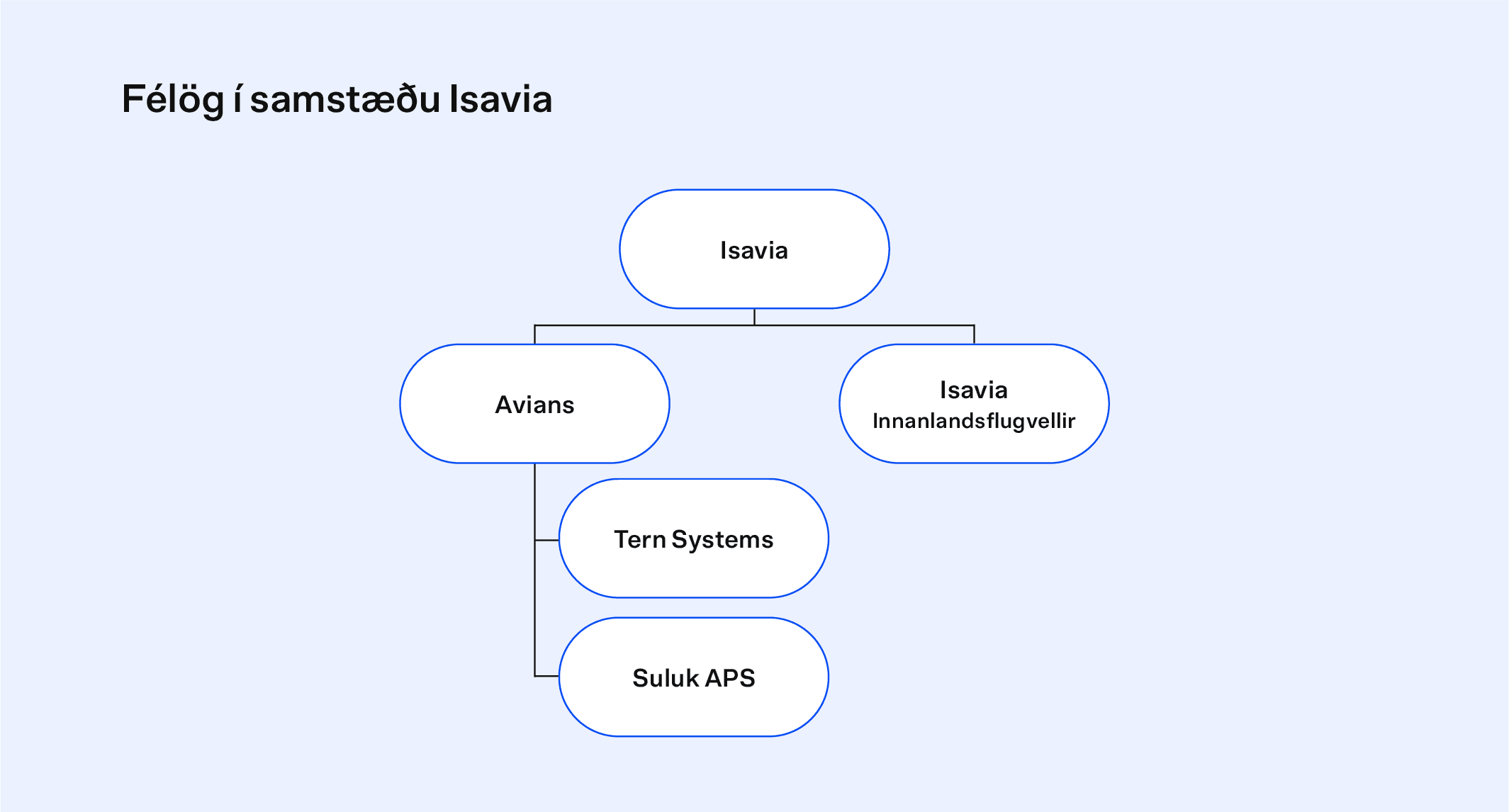 Við eigum tvö sjálfstæð dótturfélög: Avians og Innanlandsflugvellir ehf. Þessi félög eru að fullu í eigu móðurfélagsins. Þau setja sér sína eigin fyrirtækjastefnu en vinna í samræmi við flestar stuðningsstefnur móðurfélagsins. Þetta er í takt við eigandastefnu dótturfélaga Isavia ohf. Framkvæmdastjórn hvers félags ber ábyrgð á að framfylgja sinni stefnu.
