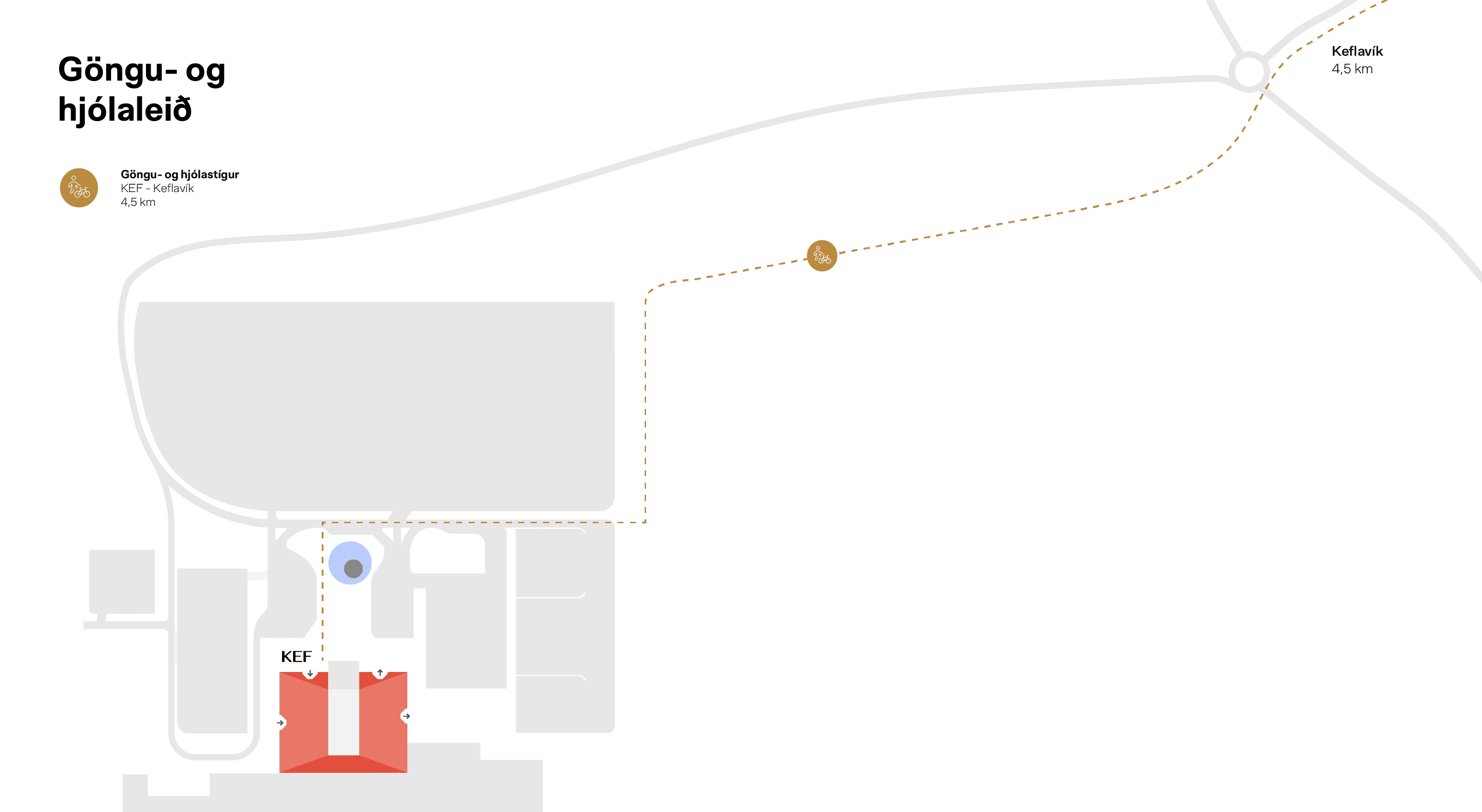 Hér finnur þú kort af göngu- og hjólastíg að Keflavíkurflugvelli.