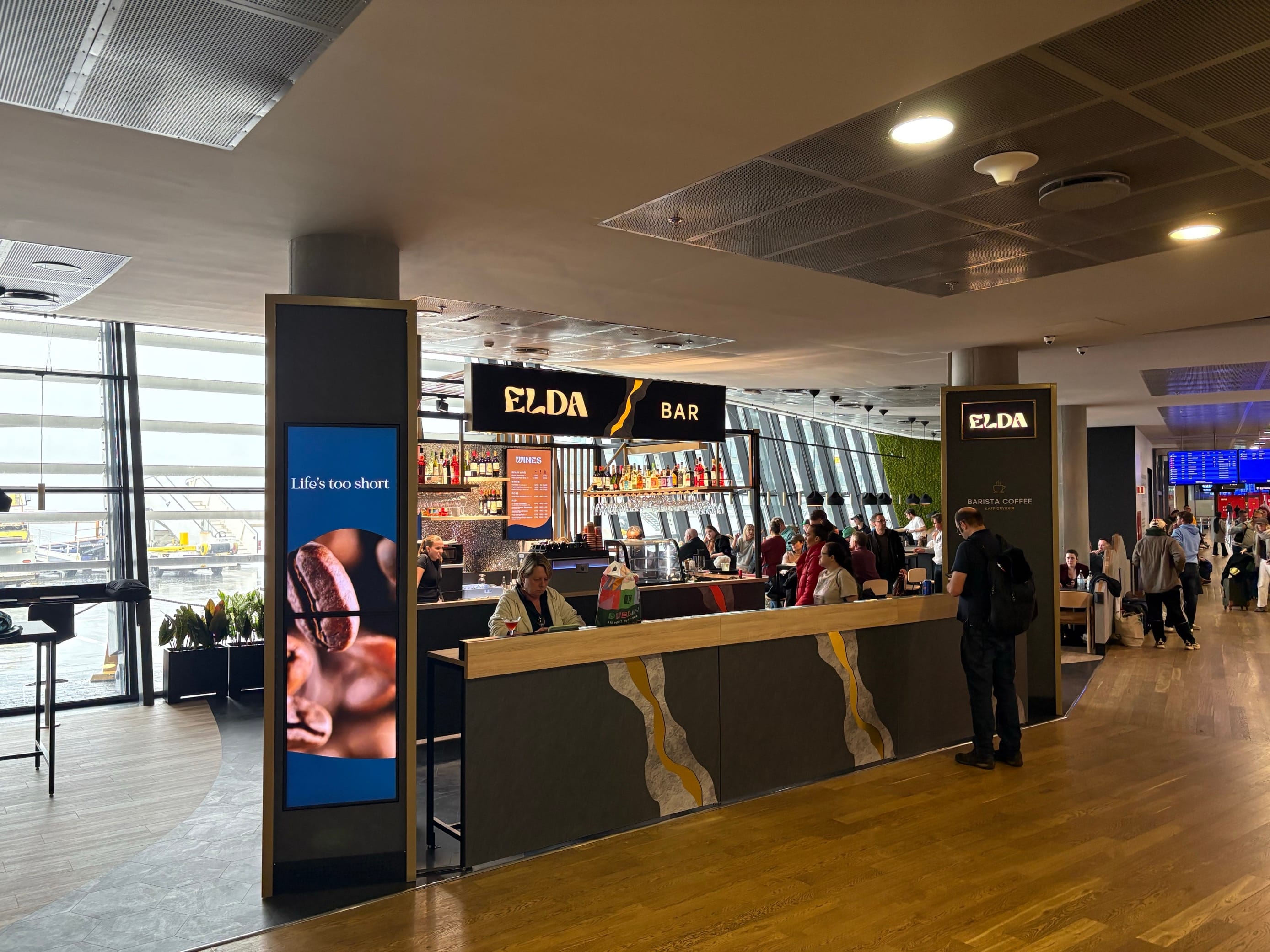 Elda Bar býður upp á úrval af bjór, vínum og kokteilum í afslöppuðu umhverfi. Elda Bar er staðsettur á svæðinu við D hlið og er kjörinn staður fyrir ferðalanga sem vilja njóta drykkjar og fljótlegrar máltíðar fyrir brottför.