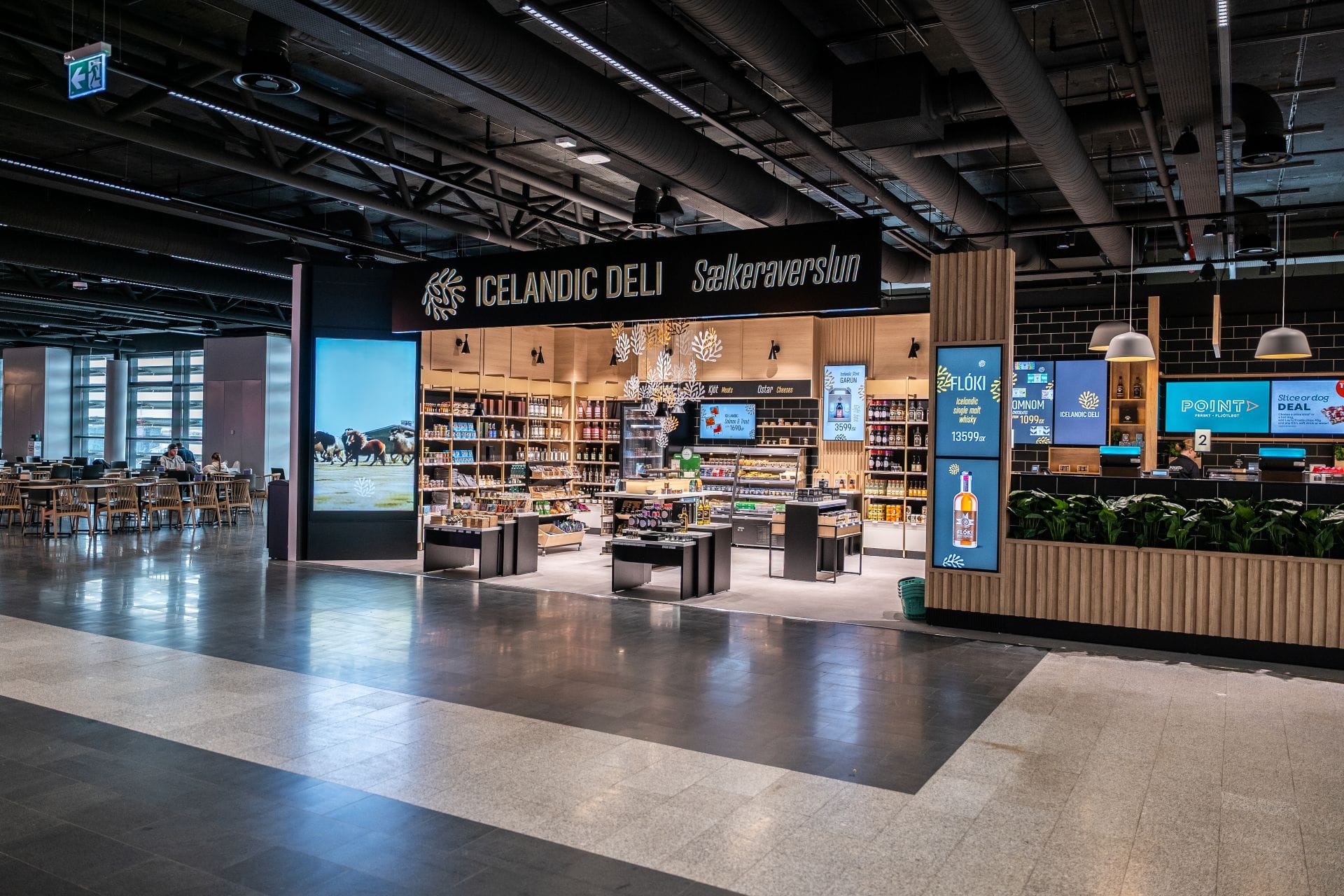 Í Icelandic Deli er hægt að grípa með sér bragð af Íslandi í ferðalagið. Þar má finna úrval af handverksostum, reyktu og þurrkuðu kjöti, hágæða súkkulaði og íslenskum kryddum. Einnig er boðið upp á handvalið úrval af íslensku víni og áfengum drykkjum. Icelandic Deli er tilvalinn staður til að finna fallegar gjafir eða taka með sér bragð af Íslandi í ferðalagið.